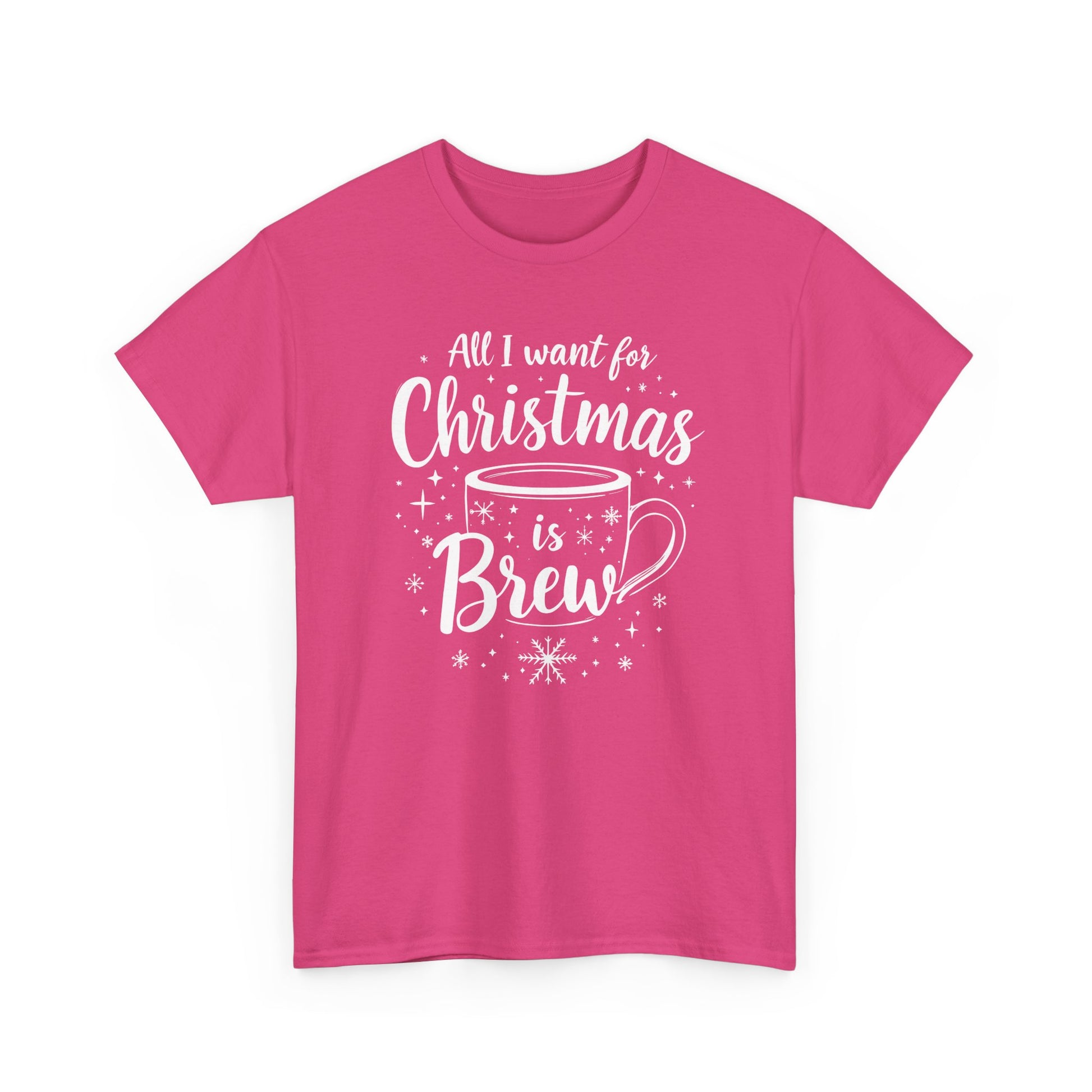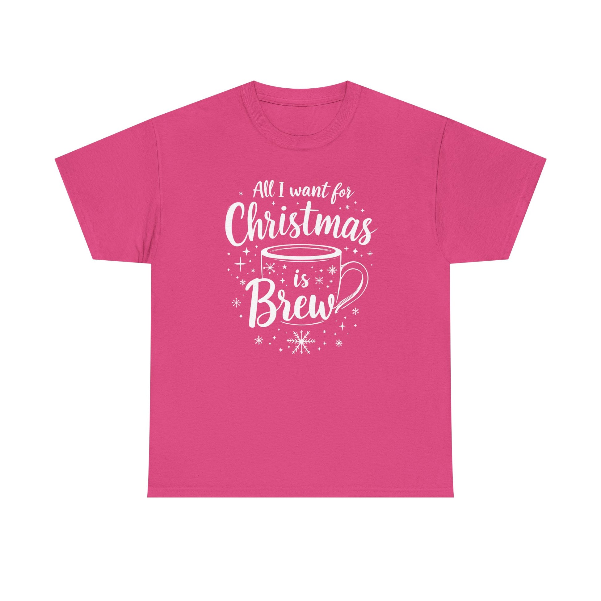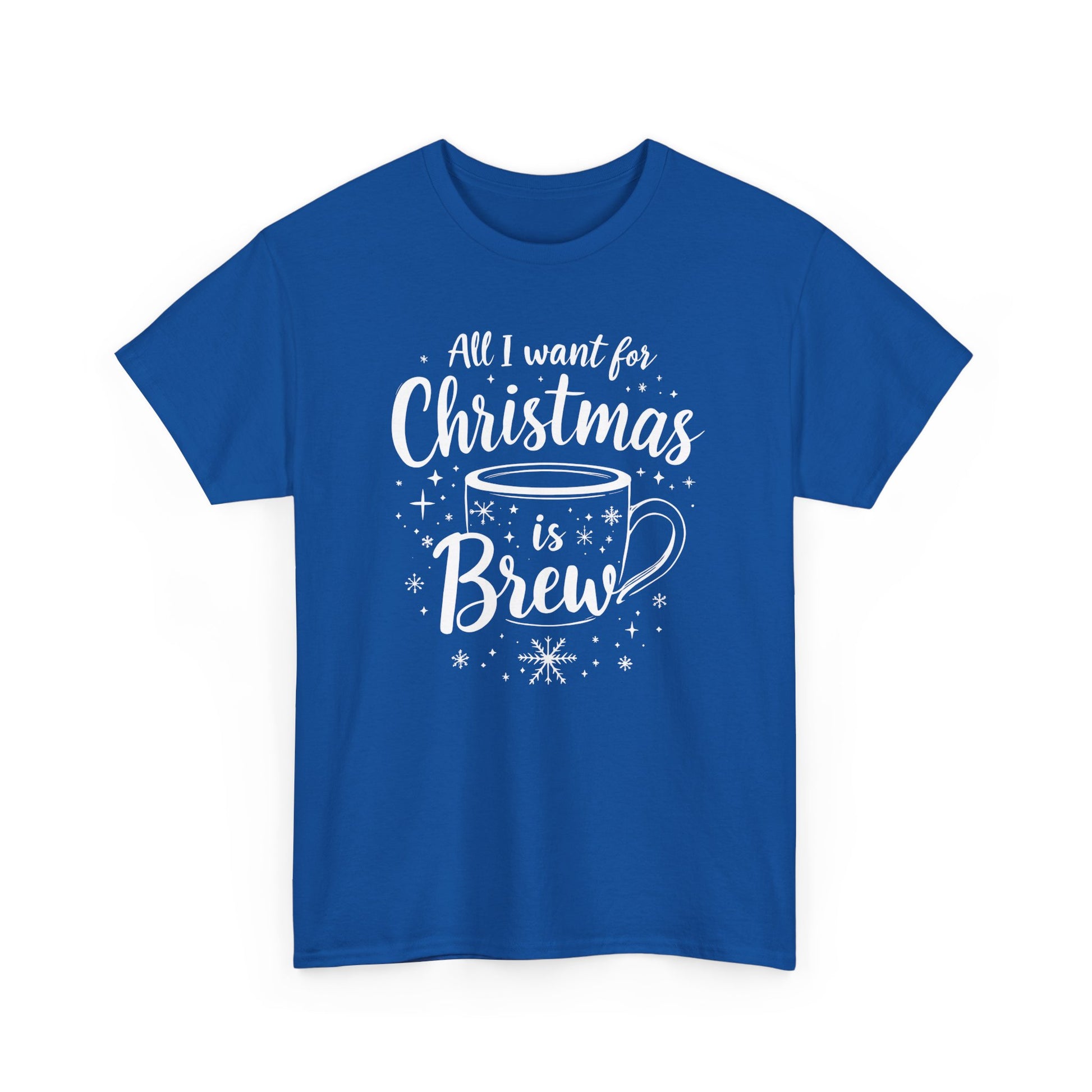 This T-Shirt with the design saying "All I want for Christmas is Brew" gives off a festive and fun vibe, perfect for the holiday season. It is suitable for adults who enjoy celebrating Christmas and are looking for a comfortable and durable T-Shirt to wear during the festivities.