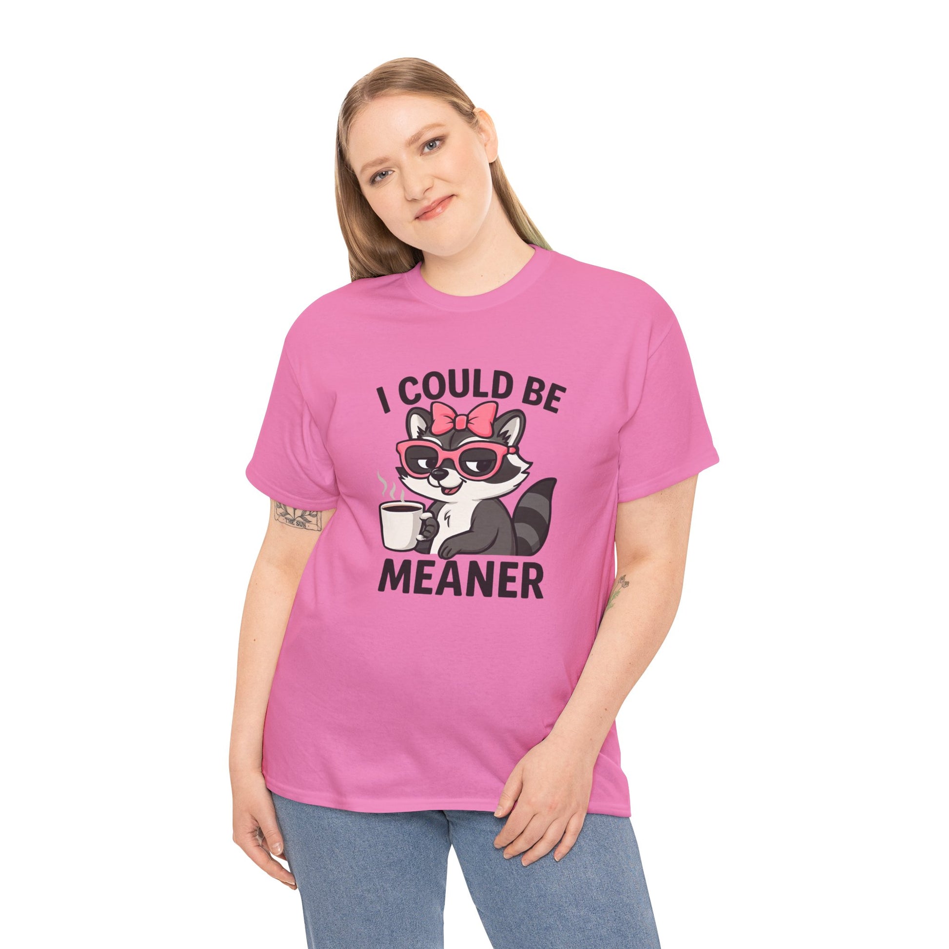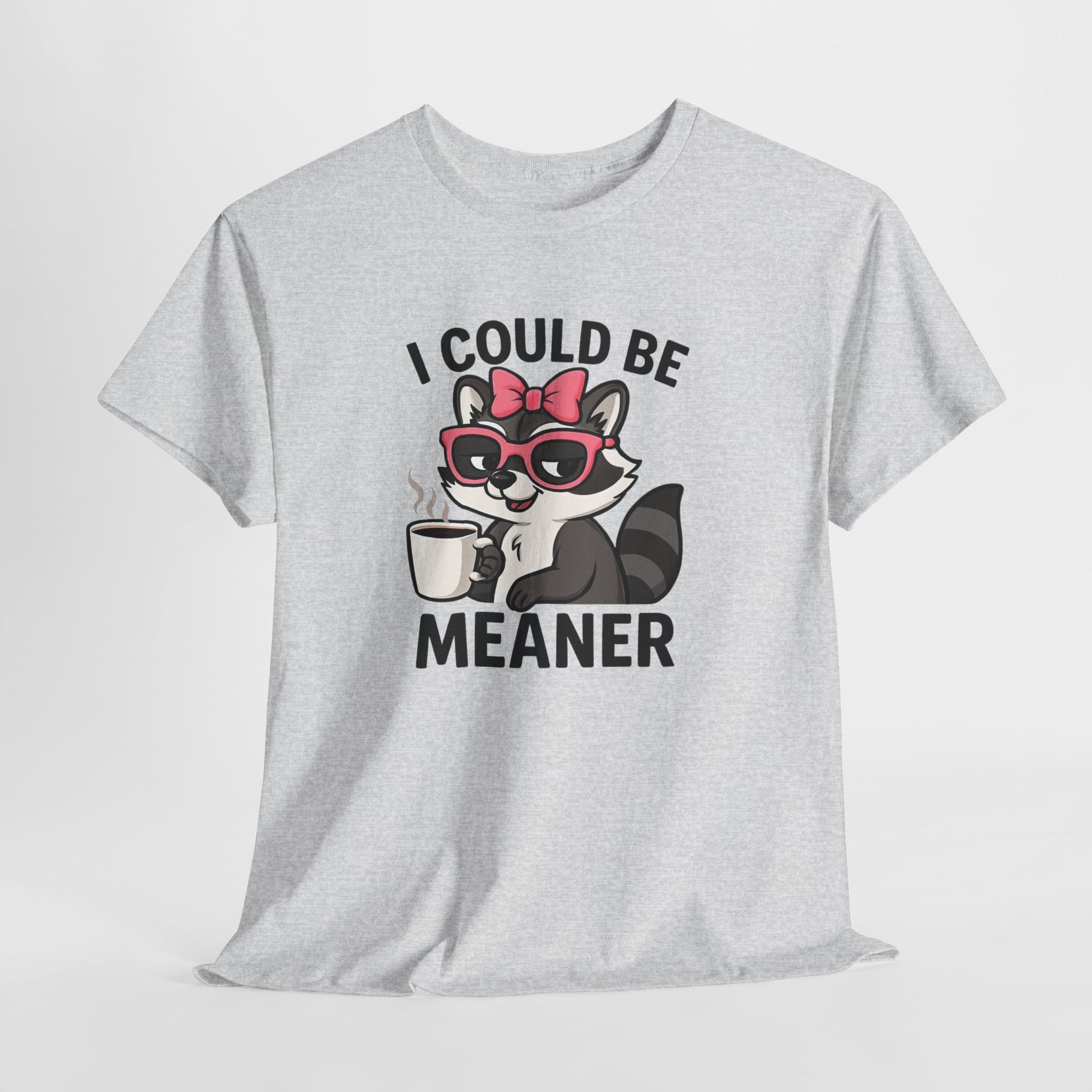 Soft, easygoing, and a little bit mischievous — this classic tee carries a playful raccoon illustration sipping coffee with the cheeky line “I COULD BE MEANER.” Lightweight but sturdy, it settles into your wardrobe as the go-to casual shirt for low-key mornings, quick errands, or hanging out with friends who appreciate dry humor. Wear it with faded jeans and a messy bun for coffee runs, or layer it under a flannel for relaxed evenings by the fire. The design reads like a wink: not loud, just sly — made for people who enjoy irony, sarcasm, and small rebellions wrapped in comfort.
