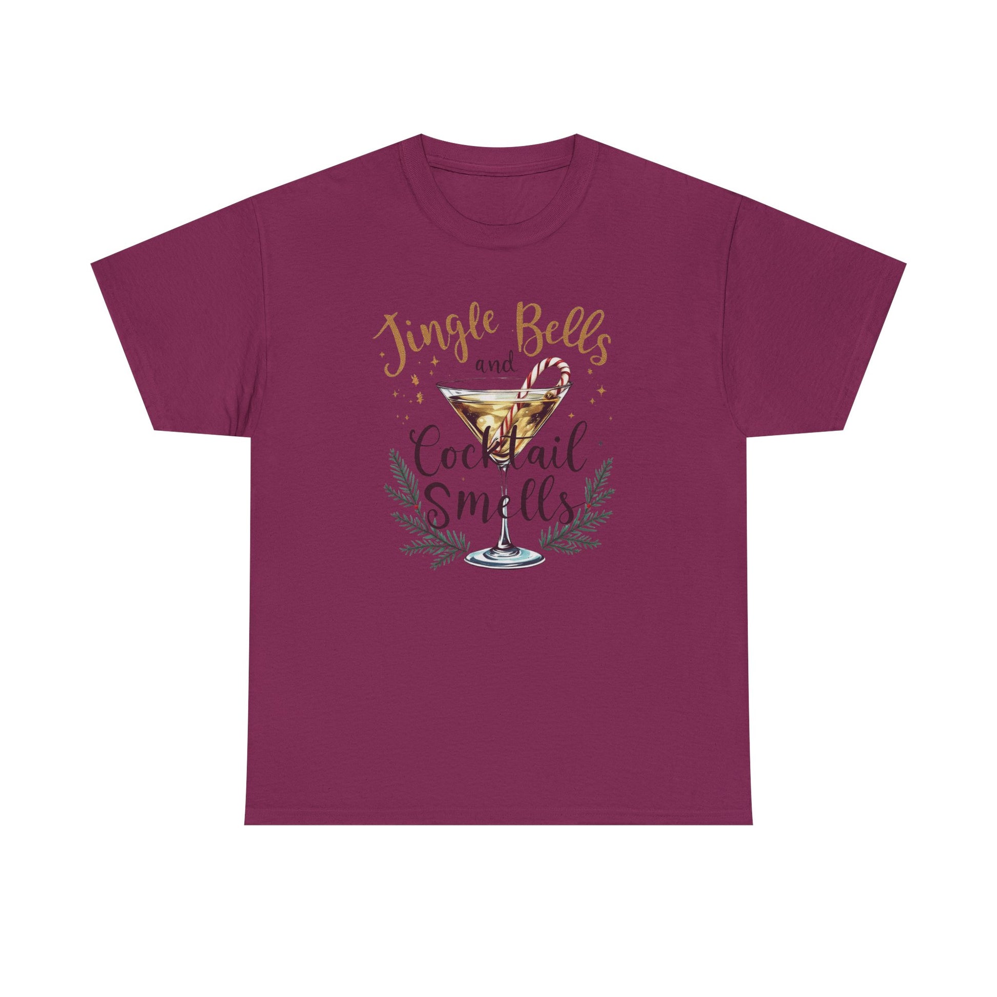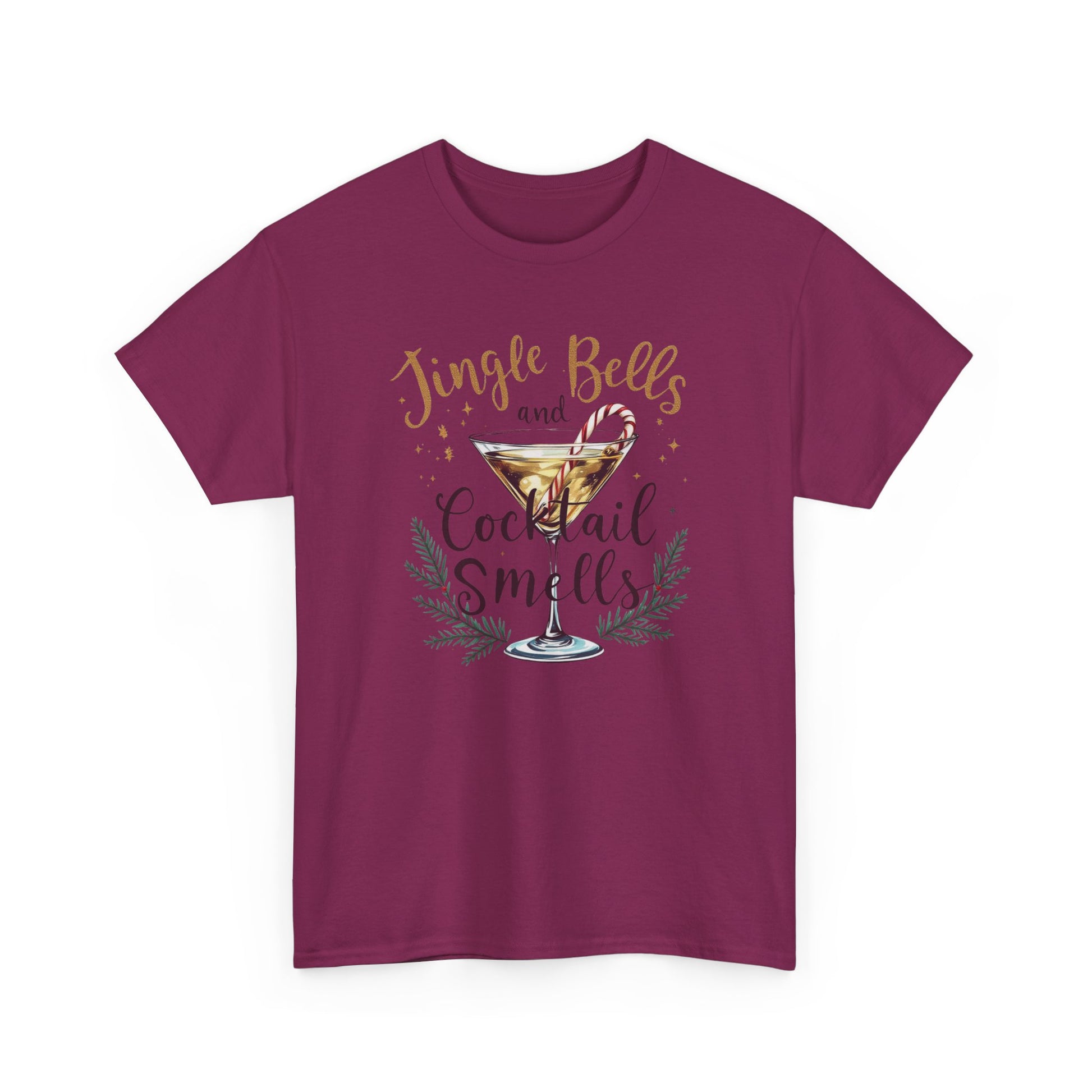 Jingle Bells Cocktail Tee, Unisex Heavy Cotton T-Shirt, Funny Holiday Shirt, Christmas Party Gift, Cozy Winter Wear, Festive Apparel