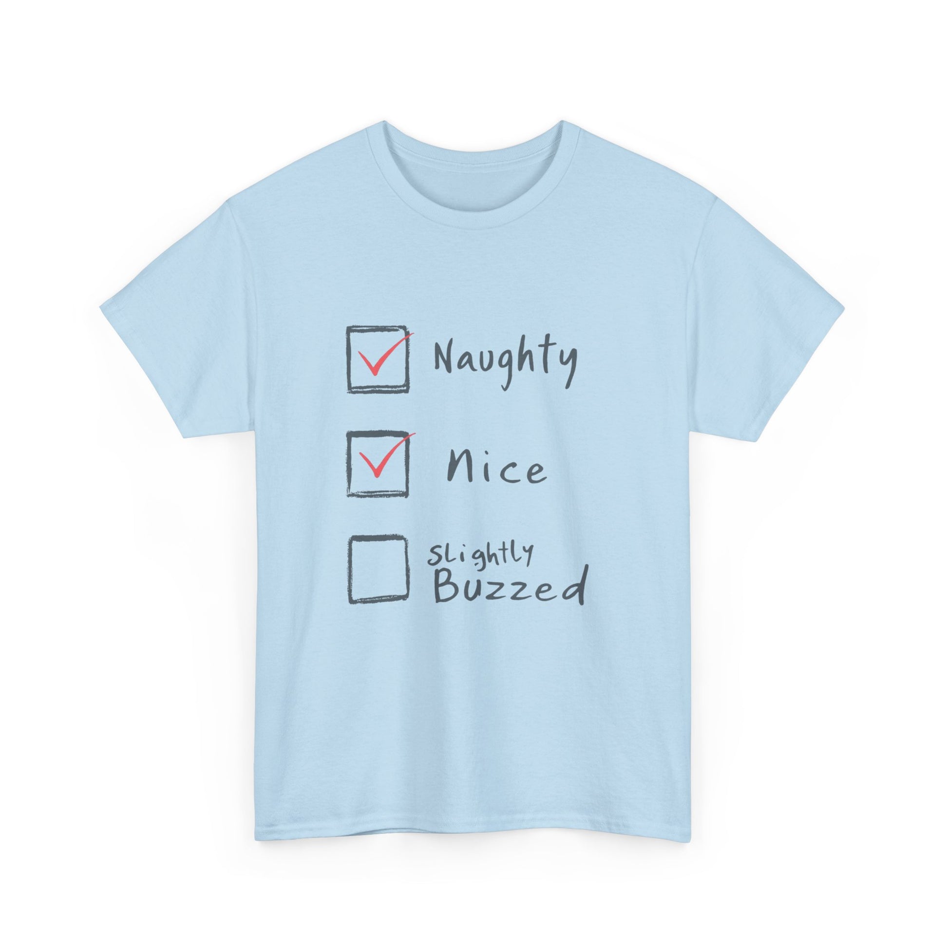 Playful Holiday Tee - Naughty, Nice, Slightly Buzzed Unisex Cotton Shirt, Funny Christmas Gift, Holiday Party Wear, Casual Festive Apparel