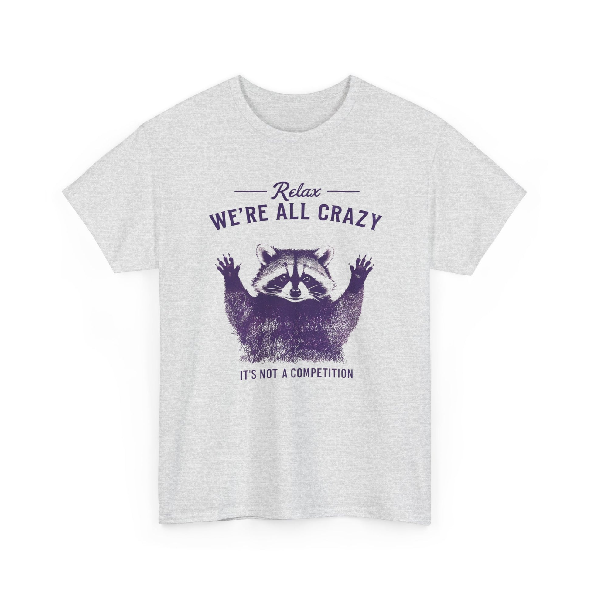 Raccoon "Relax We're All Crazy" T-Shirt — Funny Graphic Tee