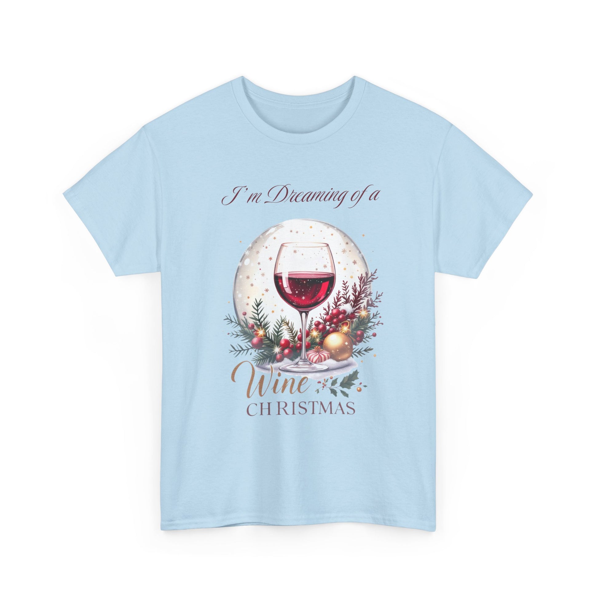 This T-Shirt featuring an elegant 'I'm dreaming of a Wine Christmas' design is perfect for the holiday season. It captures the true spirit of the season for wine enthusiasts who love the festive vibes. The design is a great fit for those looking to add a touch of holiday cheer to their wardrobe or looking for a fun gift for a wine-loving friend.